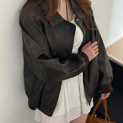 [이블렛 by 제이스타일]이블렛 보이토 레더 오버핏 싱글 자켓 제이스타일