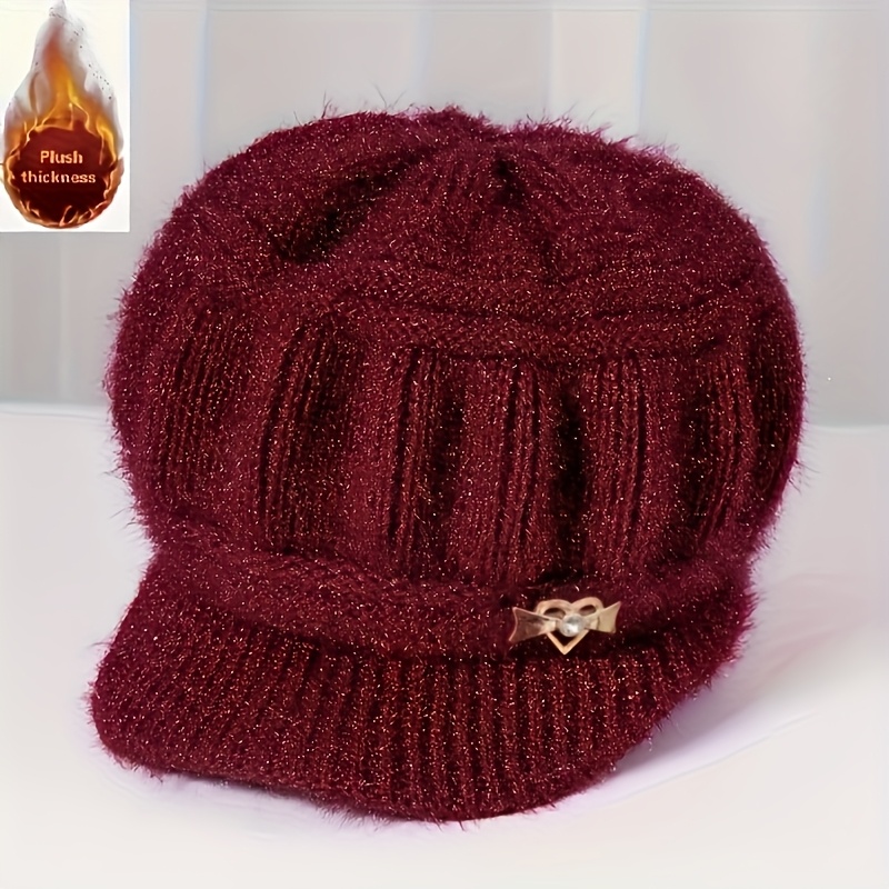 TEMU 여성을 위한 10가지 다용도 겨울용 기모 안감 모자, 부드럽고 따뜻함, 접이식 크리스마스 모자, 탄성 있는 편안한 착용감, 리본 브로치 장식, 핑크, 회색, 버건디, 보라색으로 4가지 색상으로 제공, 모든 헤드웨어 스타일에 적합