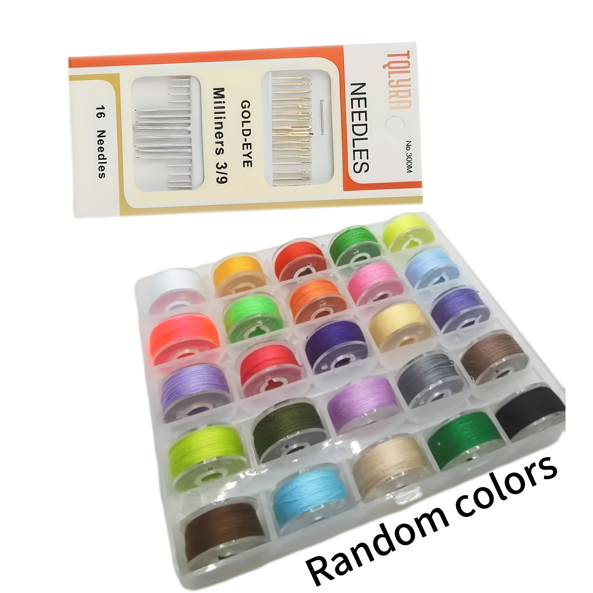 TEMU 25개 재봉틀 하단 셔틀 박스 세트 (스풀 홀더 & 실 보관 포함) - 가정용 바늘 16개, 8/10/12mm 탄성 밴드 8개, 스풀 25개, 셔틀 코어 25개 - 모든 재봉틀과 호환