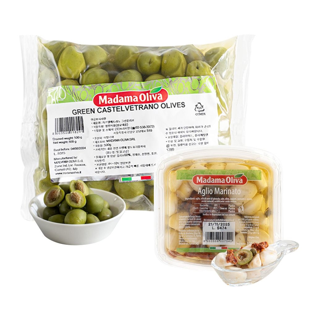 피티드 그린 카스텔베트라노 올리브 800g*1개+마늘절임 300g*1개
