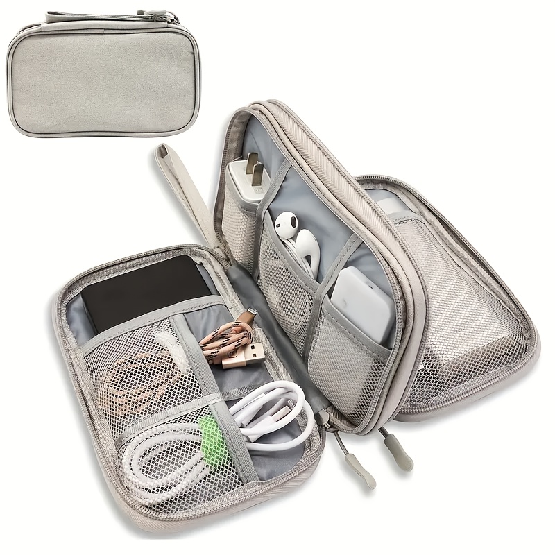 TEMU 다기능 휴대용 데이터 보관 가방 - 케이블, 충전기 및 소품 수납 가능, 대형 메쉬 포켓 2가지 색상 옵션, 다중 구획 여행 액세서리 박스, 연필 케이스, 화장품 정리함, 핸드백/백 오거나이저|필통