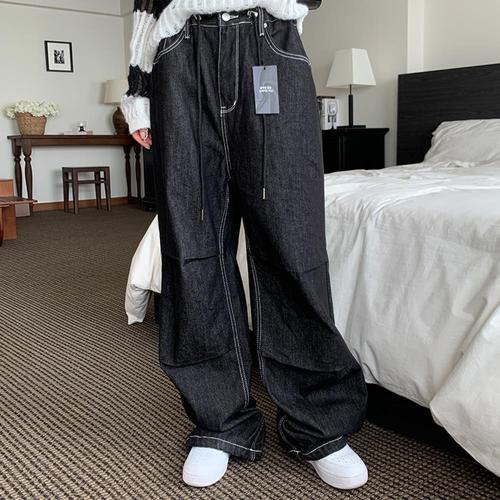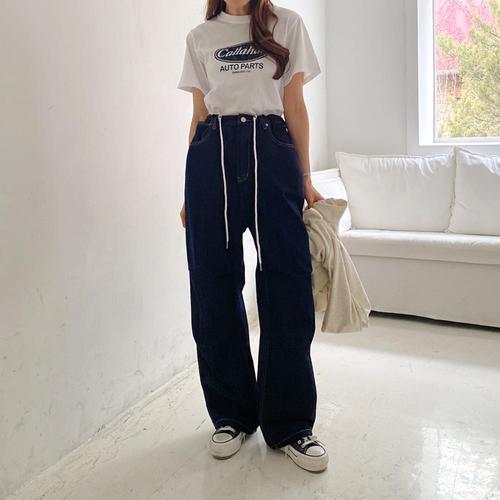 [옷자락] 여자 와이드 조거 스트링 데님 팬츠