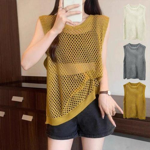 [에이치플러스몰]썸머 시스루 레이어드 나시 미디 조끼