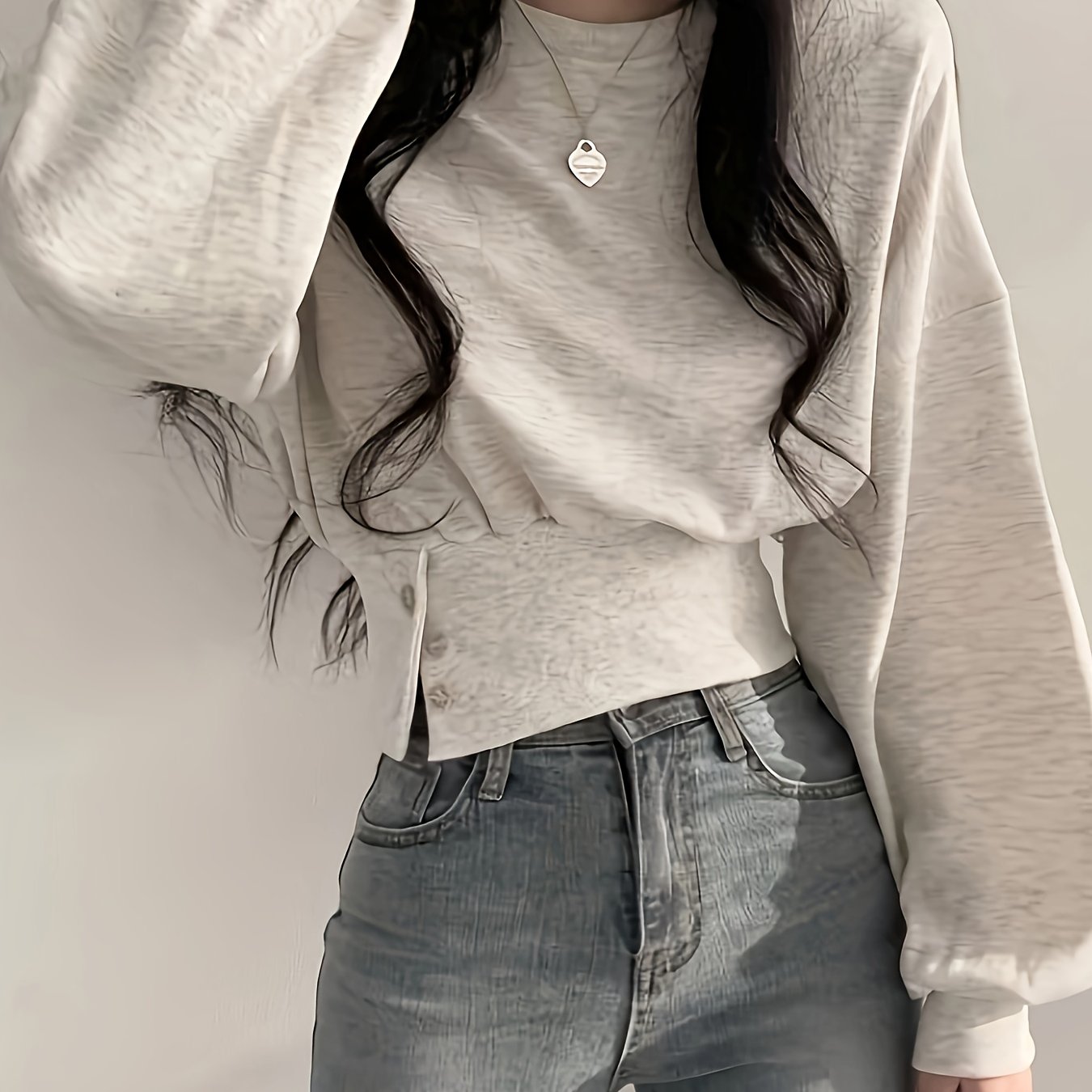 TEMU 2025년 신상 가을/겨울 컬렉션: 트렌디하고 활용도 높은 여성용 라운드넥 스웨터. 넉넉하고 편안한 핏에 허리 주름 처리와 짧은 디자인으로 완성됩니다.