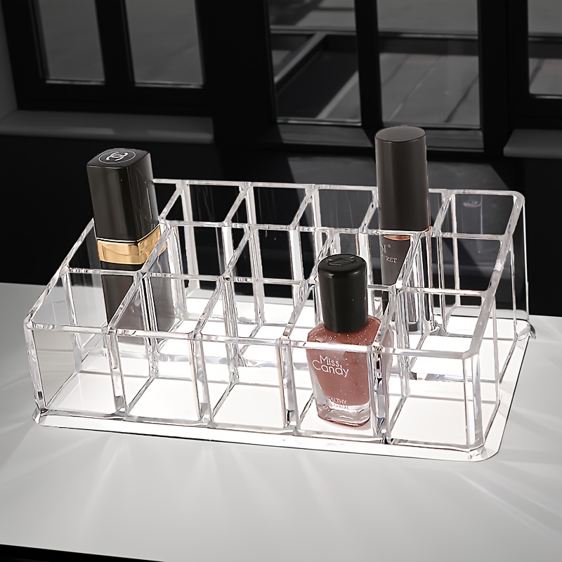 TEMU 16단 투명 플라스틱 화장품 정리함 - 립스틱 & 네일폴리시 홀더 포함 - 화장대, 책상, 욕실용 카운터탑 수납함 - 공간절약형 메이크업 브러쉬 & 뷰티 제품 정리함, 내구성 있는 모던 디자인 (조립 불필요), 향수 정리함|향수|매니큐어|립스틱