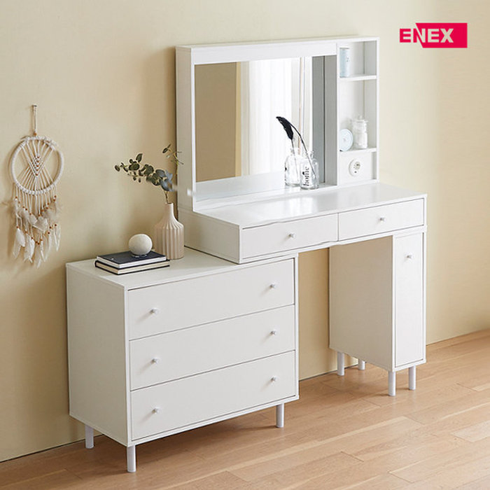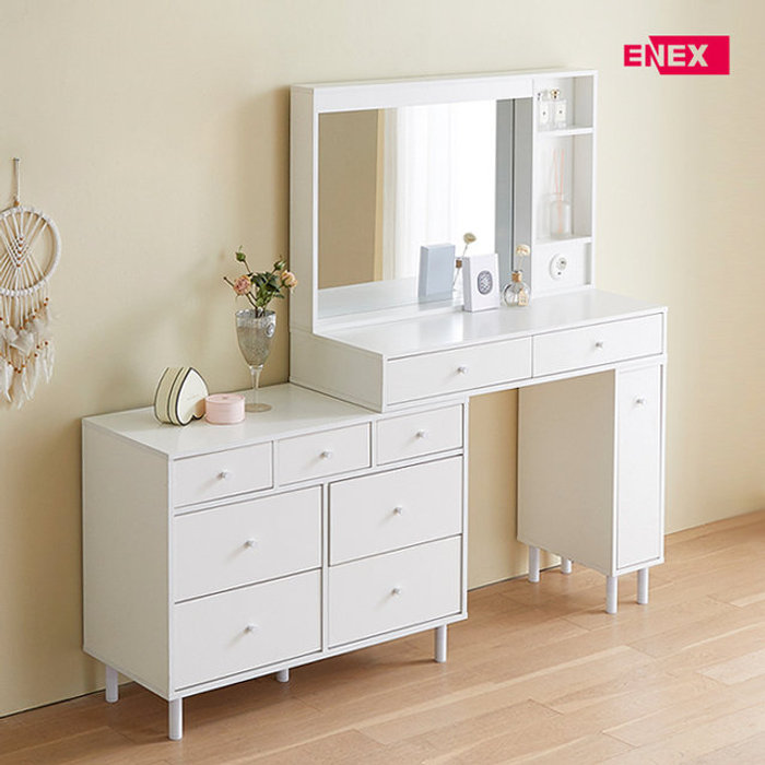 에넥스 스위트 3단7칸서랍 LED조명거울 확장형 화장대 (넓이110~170cm)