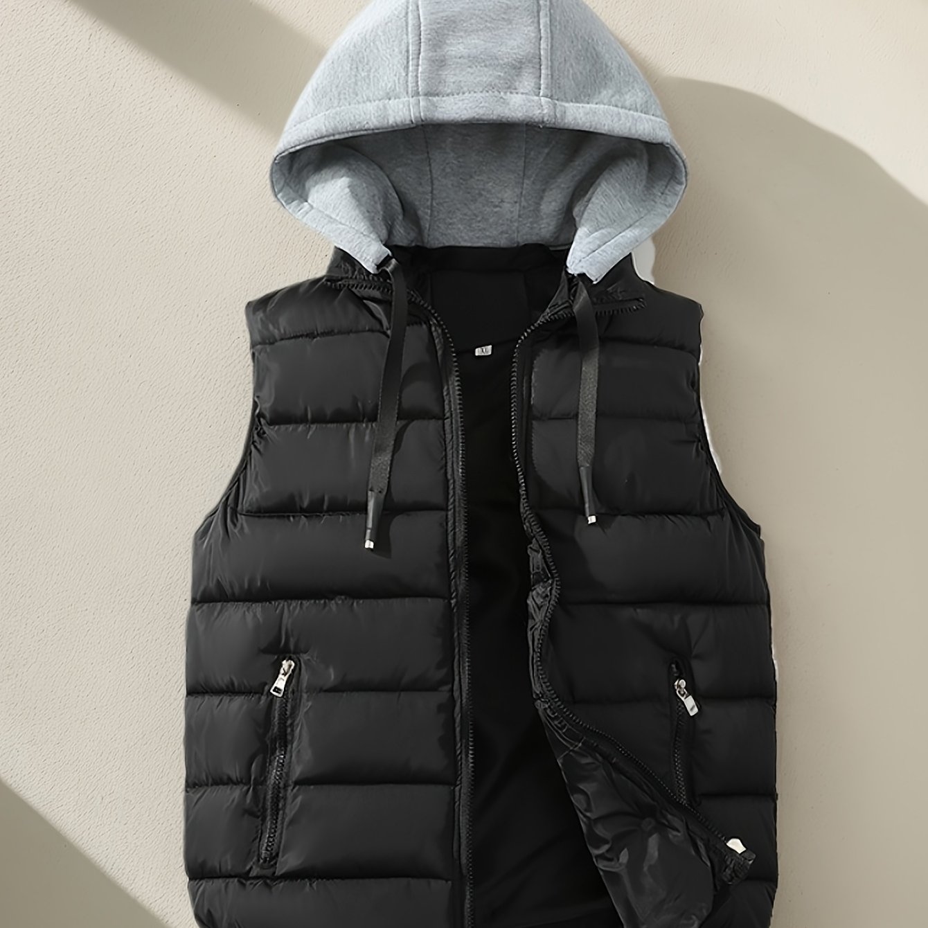 TEMU Pearson OBM 남성 솔리드 컬러 후드 조끼, 스타일리시하고 캐주얼한 민소매 따뜻한 두꺼운 재킷, 가을 및 겨울에 적합
