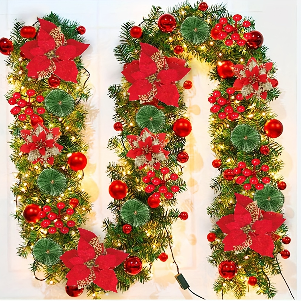 TEMU 270cm 대형 인조 크리스마스 화환 (빨간색 산딸기 꽃 & 녹색 식물) - 자체 조명 - 전원 공급 (AA 배터리 미포함) - 내구성 좋은 플라스틱 , 가정, 사무실, 파티 장식 - 간편한 걸이형 문 장식, 현관문용 크리스마스 화환