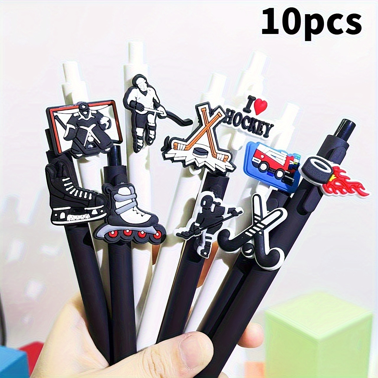 TEMU 10개 세트 - 수월한 필기감의 하키용품: 선수, 스틱, 골대가 그려진 블랙 & 레드 디자인 젤펜 (내구성 있는 플라스틱) - 사무실/학교에 적합 / 아이스하키 팬·선수·코치를 위한 생일/크리스마스 선물 · 휴일 선물 · 팀원을 위한 문구류