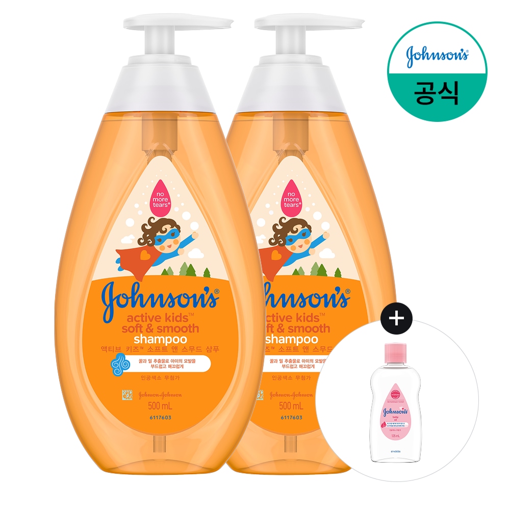 액티브 키즈 소프트 앤 스무드 샴푸 500ml x2+(증정)베이비오일 125ml