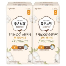 좋은느낌 유기농 100% 순면 프리미엄 팬티라이너, 롱, 75개입, 2개