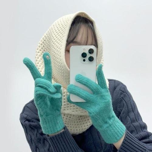 [다잇템][다잇템] 여자 꽈배기 FW 민무늬 스웨터 터치 주니어 핑거홀 장갑_19288222_588872