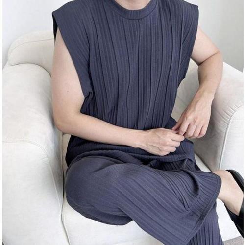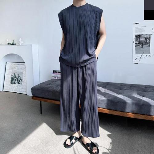 [셀러허브_여성트랜드패션]세트 남자플리츠 주름바지 플리츠 와이드 남자옷 남자여름옷 남자 민소매