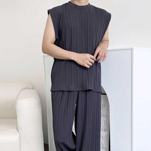 [셀러허브_여성트랜드패션]플리츠 남성 상하세트 밴딩팬츠 민소매 DJJ58 주름 바지