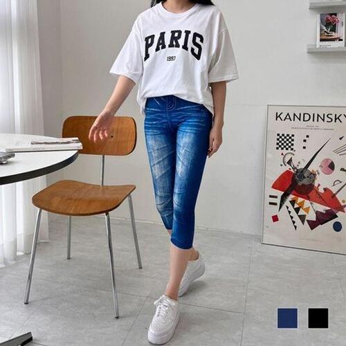 [끌레아]핌프 주름 워싱 데님 7부 레깅스 부레깅스 스키니 프린팅 바지 여름