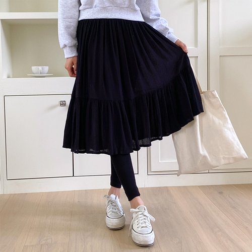 H스타일(JO)쉬폰2단주름치렝스/치랭/스판/치마레깅스