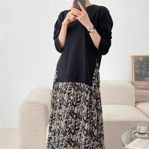 [다잇템]여자 롱슬리브 맨투맨 코디 주름치마 롱원피스 (8991176A)
