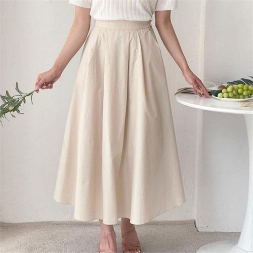 여자 여름 밴딩 플리츠 주름 린넨 플레어 롱스커트