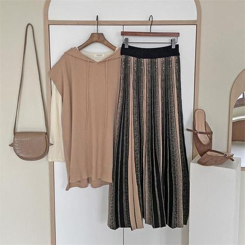 페이릿 여성용 플리츠 라인 니트 밴딩 스커트