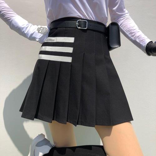 로로얼로이 발랄한 화이트 세줄 여성 골프 주름 치마 치마바지.