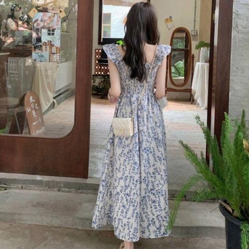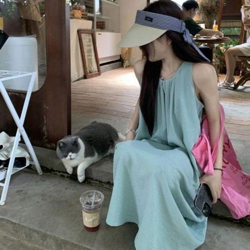 [에이치플러스몰]핀턱 인기 넥라인 주름 하늘하늘 감성 나시 롱원피스
