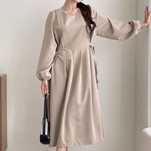[에이치플러스몰]여성 주름 긴팔 롱원피스 1P A라인 포켓 치마 데이트