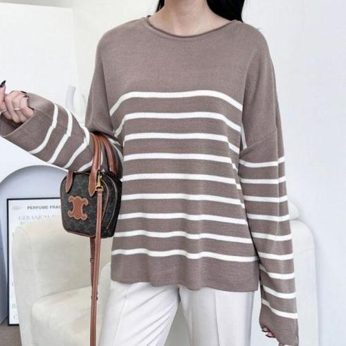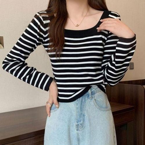 줄무늬 레이디스니트셔츠 스트라이프 풀오버 장팔 데일리 티 WFJIXQ7