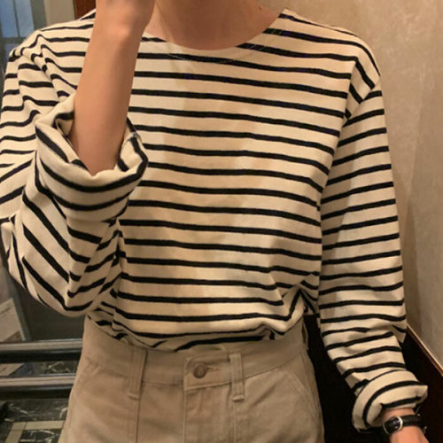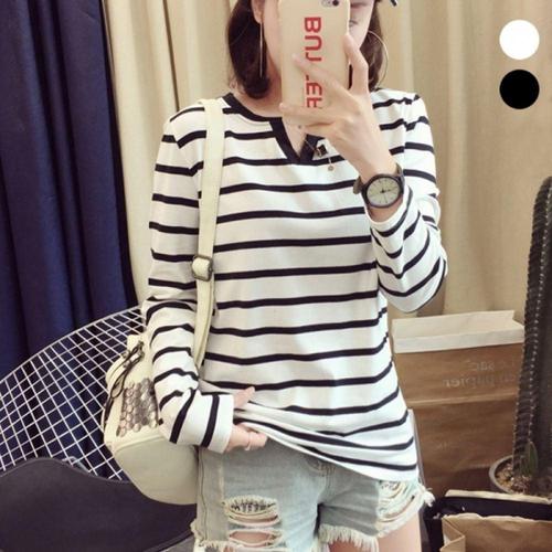 [셀러허브_여성트랜드패션]ONM 여자 2컬러 봄 가을 데일리 줄무늬 긴팔티 맨투