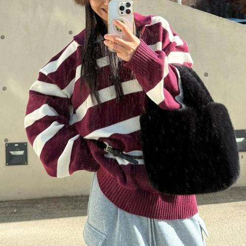 [다잇템][다잇템] 남자 여자 오픈넥 박시핏 FW 커플티 줄무늬 니트_23915998_588872