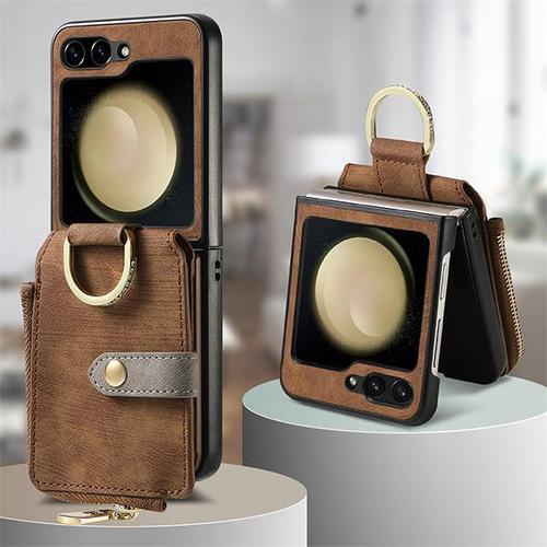갤럭시Z 플립7 케이스/F766 쥬얼리 D링 빈티지 지퍼 지갑 가죽케이스