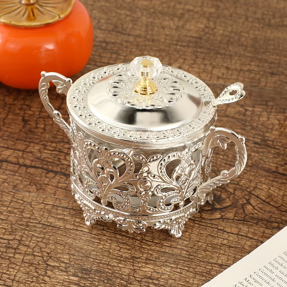 TEMU 우아한 유럽 스타일 유리 설탕병 뚜껑 포함 - 누수 방지, 재사용 가능한 주방 양념 용기, 건과일 등에 적합 - 결혼식, 휴일 및 가정용으로 완벽함