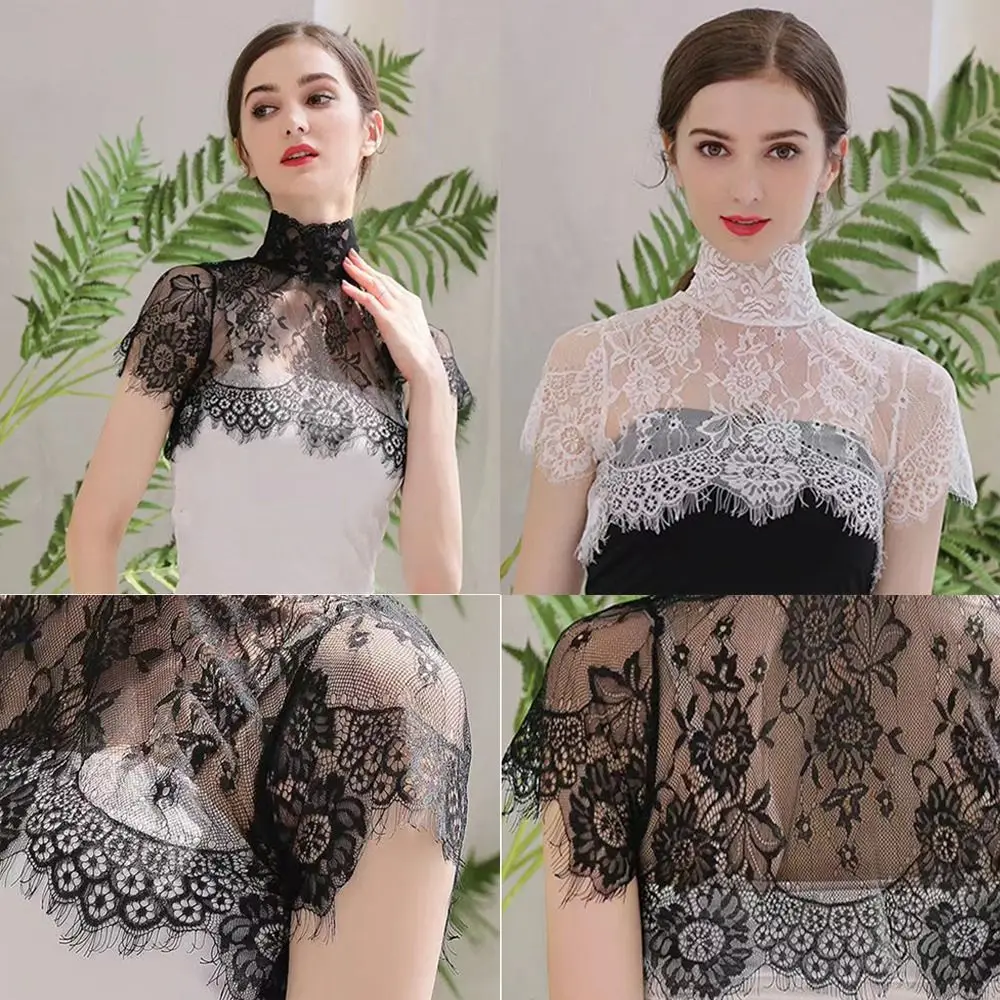 탈착식 레이스 가짜 칼라 블라우스 숄 랩, 자수 쉬폰 가짜 칼라 탑 숄 장식, 의류 액세서리, 신제품
