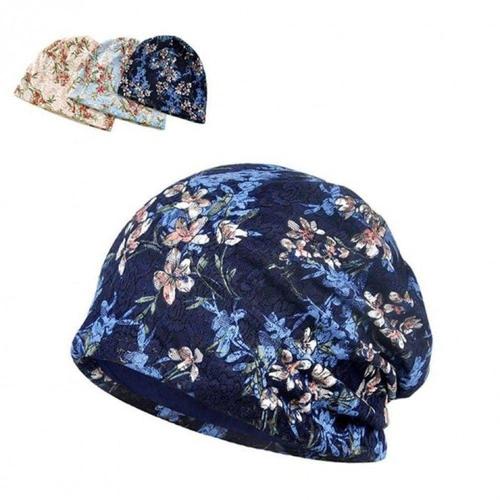 여성 수면모자 숏 비니 두건 실내 중년 플라워 WFLYNJD