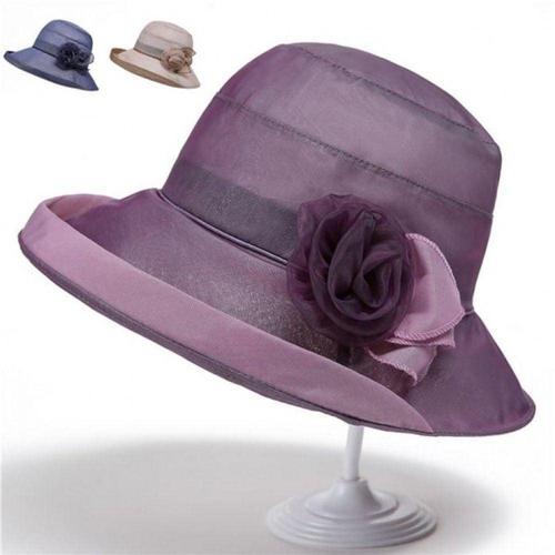 /신상오픈런 중년 여성용 꽃무늬 레이스 망사 이중 봄 모자
