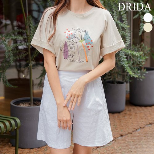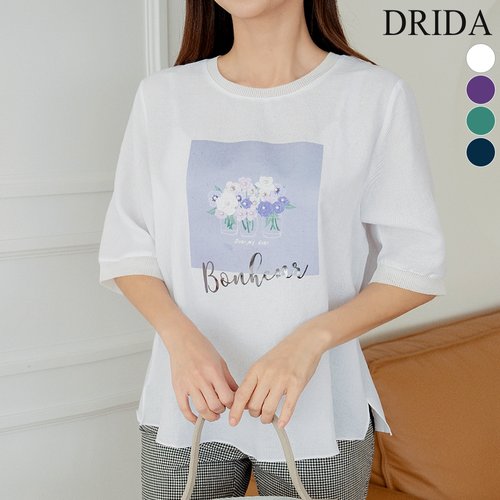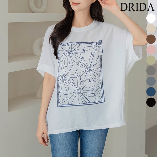 드리다 여자 여름 프린팅 면 빅사이즈 화이트 반팔 티셔츠 40-50대 미시 중년여성 엄마옷 캐주얼 출근 등원
