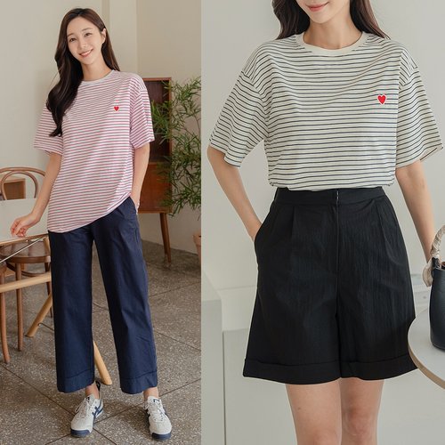 [애비뉴투지]엄마옷 이지 스트라이프 여성 여름 반팔 라운드 티셔츠 A07258 50대 60대 중년여성
