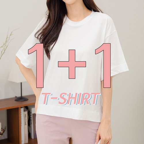 1+1 여름 여자 기본티 라운드 빅사이즈 반팔 면티 40-50대 중년여성 엄마옷 캐주얼 미시 마담 출근