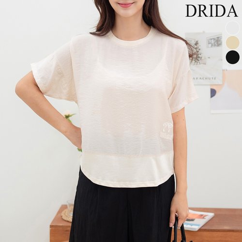 드리다 여름 여자 반팔 라운드 세미 크롭 스판 빅사이즈 티셔츠 40-50대 중년여성 엄마옷 미시 마담 출근