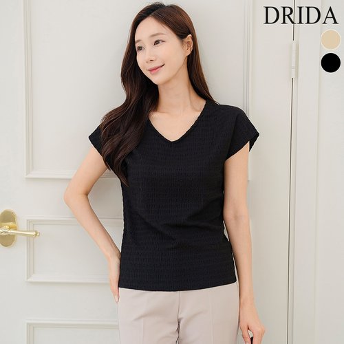 드리다 여자 여름 플리츠 슬림 브이넥 캡소매 반팔 나시 티셔츠 40-50대 미시 중년여성 엄마옷 출근 하객