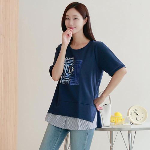 [아이우먼]중년 빅사이즈 마담 임부복 207 가오리배색반팔티셔츠 DILE028
