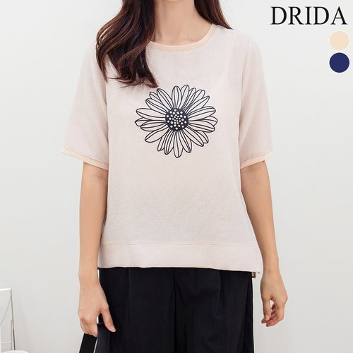 드리다 여자 여름 해바라기 프린팅 빅사이즈 반팔 티셔츠 40-50대 미시 중년여성 엄마옷 캐주얼 출근 모임