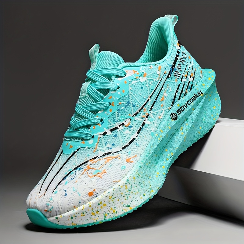 TEMU 카본 플레이트 기술이 적용된 마라톤 전문 런닝화 | 가벼운 쿠션 운동화, 미끄럼 방지 TPU/고무 밑창, 통기성 좋은 흰색-보라색 그라데이션 디자인 (마라톤, 헬스, 트레이닝용) - 남성, 여성|운동화|런닝화|러닝화