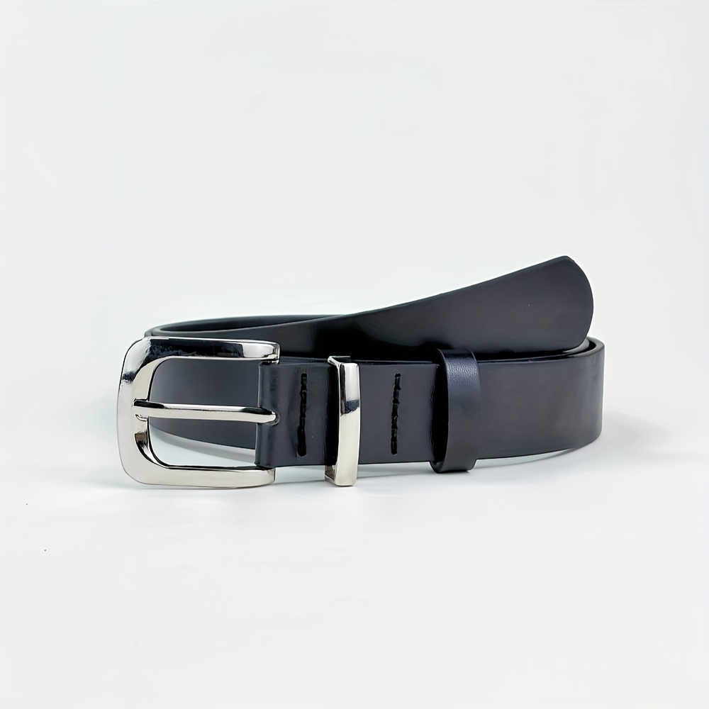 TEMU 여성용 간편하고 스타일리시한 PU 벨트 | 내구성이 뛰어나고 패셔너블하며 다재다능하며 은색 사각 오픈워크 철합금 버클이 장착되어 청바지, 드레스 및 캐주얼 바지와의 일상복에 이상적입니다.