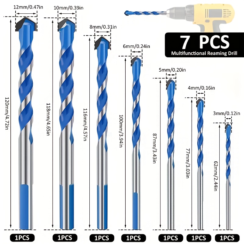 TEMU 3/4/7개 드릴 비트, 다기능 드릴 비트, 콘크리트, 타일, 유리, 도자기, 벽돌, 목재 및 플라스틱용 익스트림 펀칭 드릴 비트, 전기 드릴용 드릴 비트