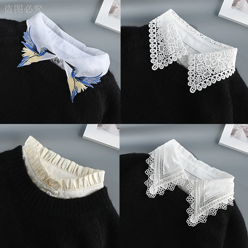 M - XXL 가짜 칼라 여성 분리형 칼라 옷깃 셔츠 흰색 거짓 칼라 하프 셔츠 여성 여성 액세서리 목 장식