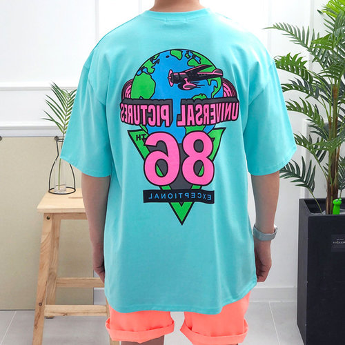 남녀공용 지구 반팔티 커플티 오버핏 빅사이즈 티셔츠 210g