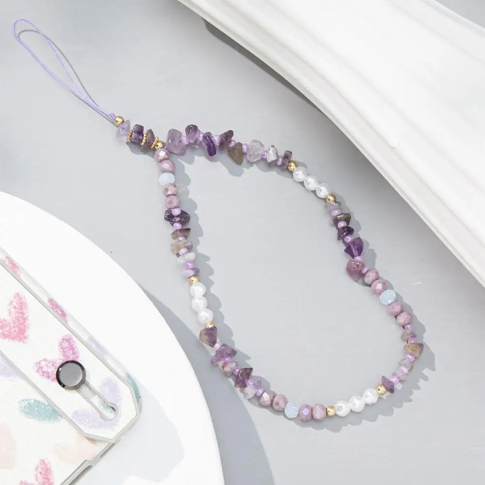 트렌디한 스톤 진주 비즈 휴대폰 체인, 여자 핸드폰 스트랩, 분실 방지 랜야드 걸이식 코드, 쥬얼리 팔찌 키체인