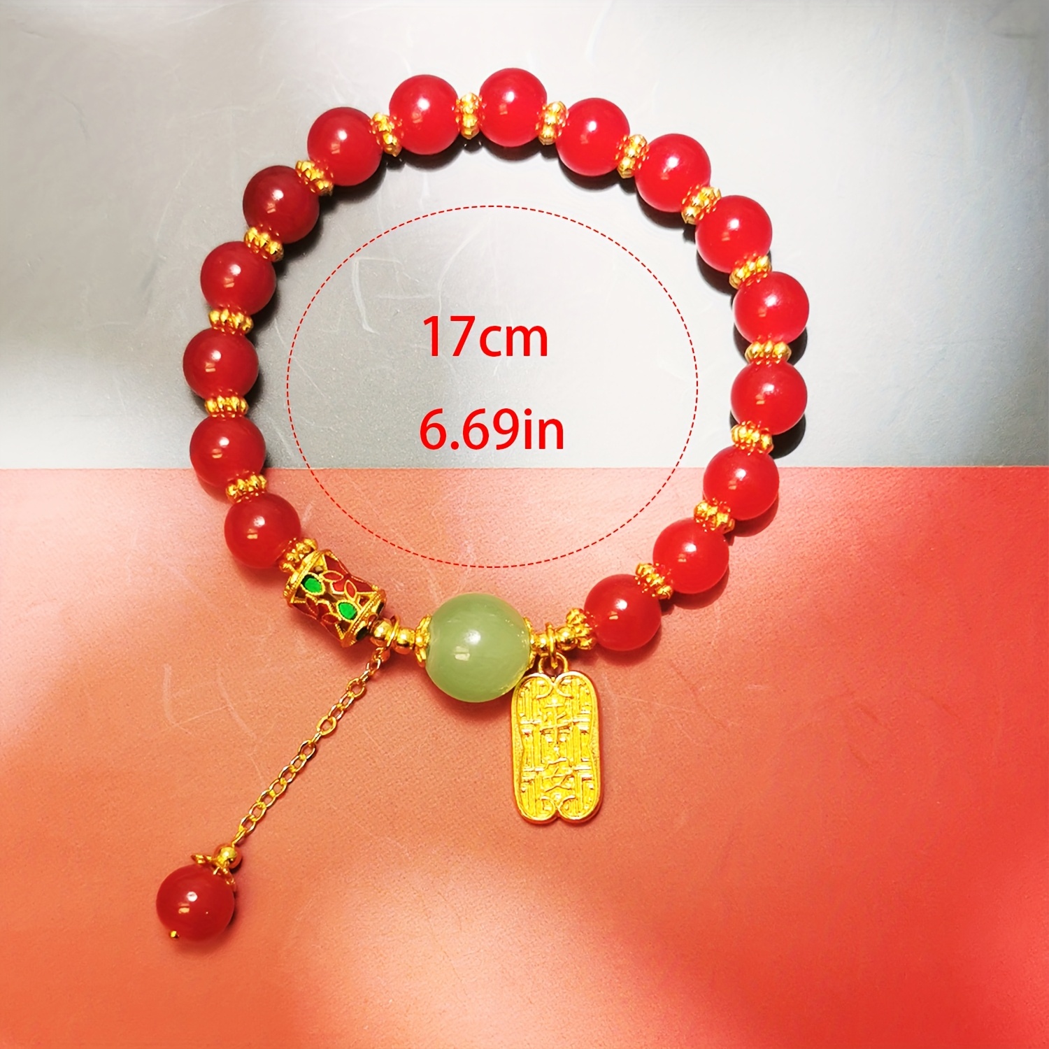 TEMU 1개 그린 라이크 이미테이션 팔찌 - 남녀 공용 - 컷팅 광택 비즈, 링 같은 디자인, 웨딩/데일리 착용, 설날/발렌타인데이/어머니날 선물, 연중 럭셔리 액세서리 (도금 없음)