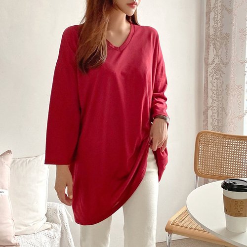 빅사이즈여성의류 008 루즈브이넥무지긴팔티 DNOA599