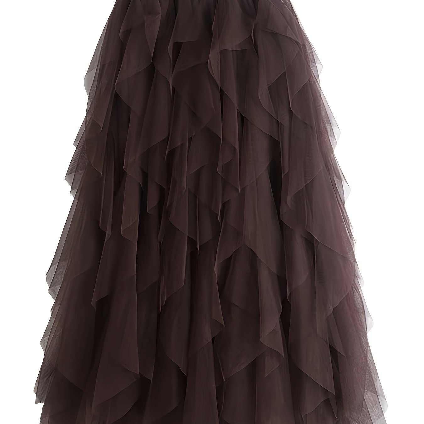 TEMU 여성용 시크한 우아함의 하이웨이스트 A라인 튤 스커트 - 시크한 한국 스타일 봄 컬렉션, 섬세한 메쉬 레이어가 있는 쉬어 브라운 폴리에스터, 여름에 완벽한 스커트